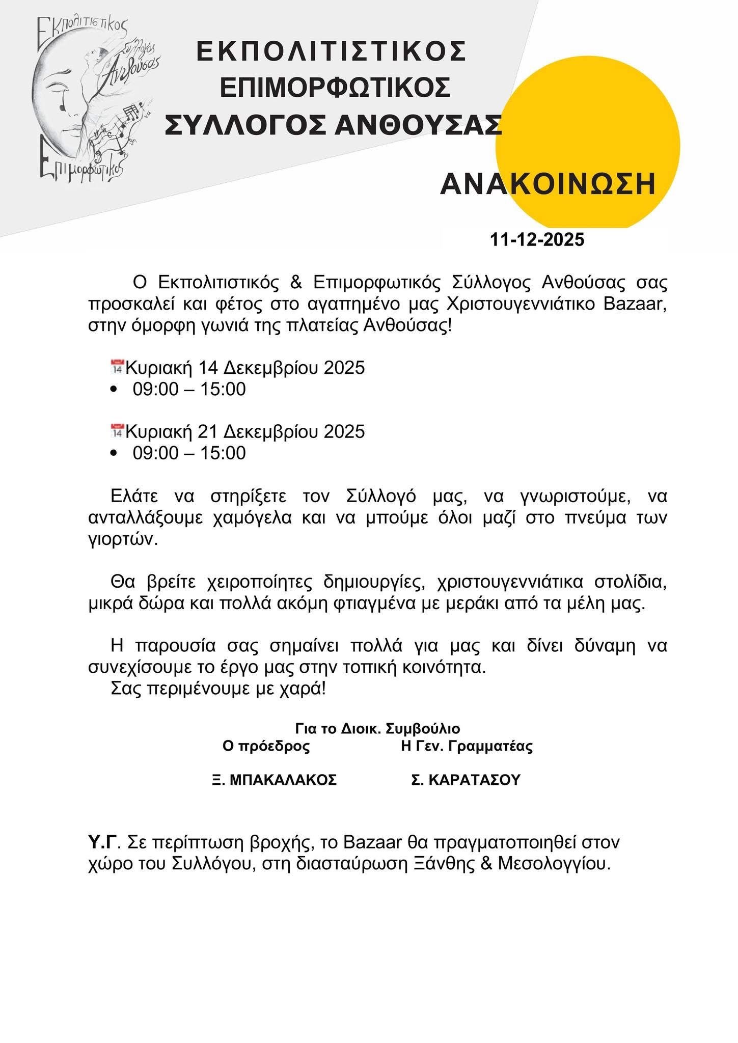 Συμβολικό κλείσιμο του Δήμου Παλλήνης, την Τρίτη 16 Δεκεμβρίου 2025 Ο Δήμος Παλλήνης ενημερώνει τους δημότες...