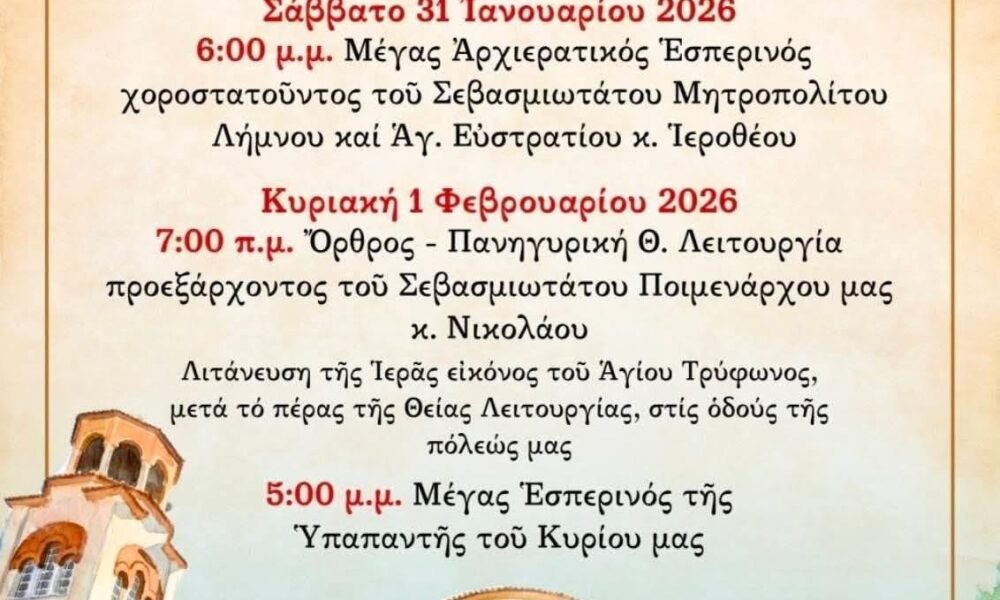 10 Σεπτεμβρίου, 2025Οι τελετές αγιασμού θα πραγματοποιηθούν αύριο 11 Σεπτεμβρίου 2025 σε όλα τα σχολεία της πόλης. ...