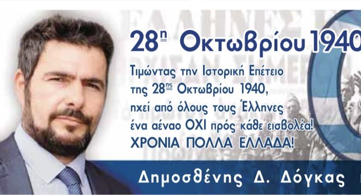 Δημοσθένης Δόγκας, Πολιτευτής Περιφέρειας Αττικής για την 28η Οκτωβρίου: «ΧΡΟΝΙΑ ΠΟΛΛΑ ΕΛΛΑΔΑ»
