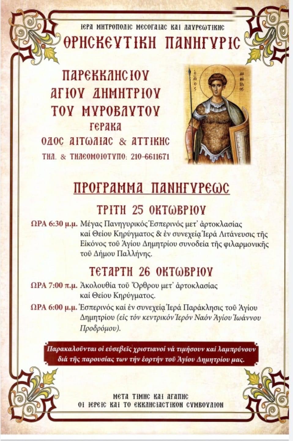 Εορτάζει ο Άγιος Δημήτριος στον Γέρακα