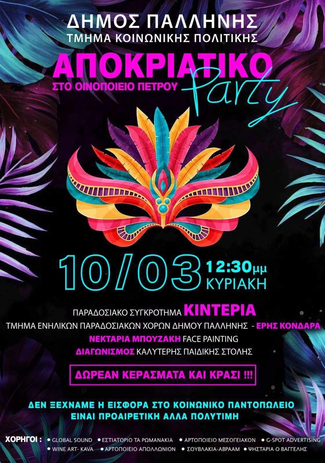 Αποκριάτικο πάρτι στο Οινοποιείο Πέτρου στην Παλλήνη