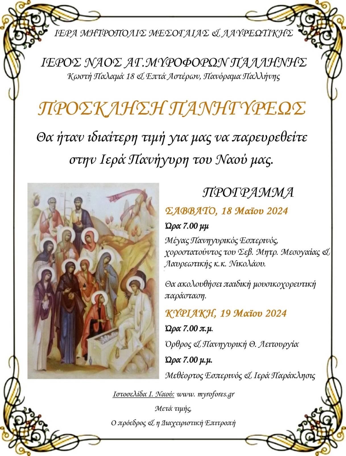 Εορτάζει ο Ι.Ν. των Μυροφόρων στο Πανόραμα Παλλήνης